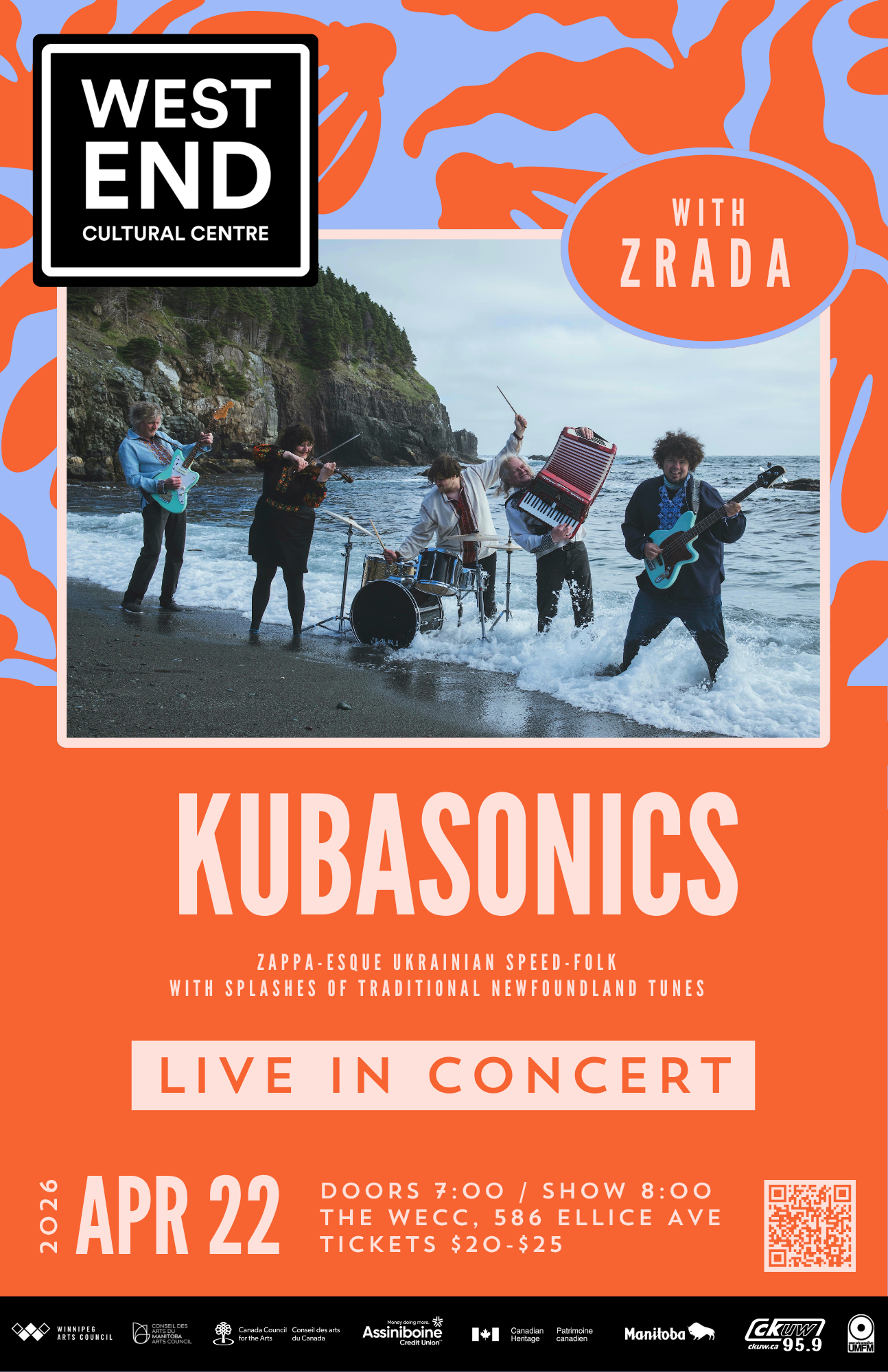 In 2006 a conspiracy of Ukrainian language musicians in Winnipeg came together as Zrada and have been making some of Canada’s most innovative psych-folk music ever since. Drawn together by their love of Ukrainian folk-music and all things metal, Zrada’s music began as both a tribute to tradition as well as a cultural wrecking ball. Prog-rock keyboards, dueling accordions and violins, heavy guitars and drum sounds from the abyss mercifully come together to create a truly transformative sonic experience. Zrada has performed throughout Canada on festival stages and are a mainstay in Winnipeg’s diverse scene.