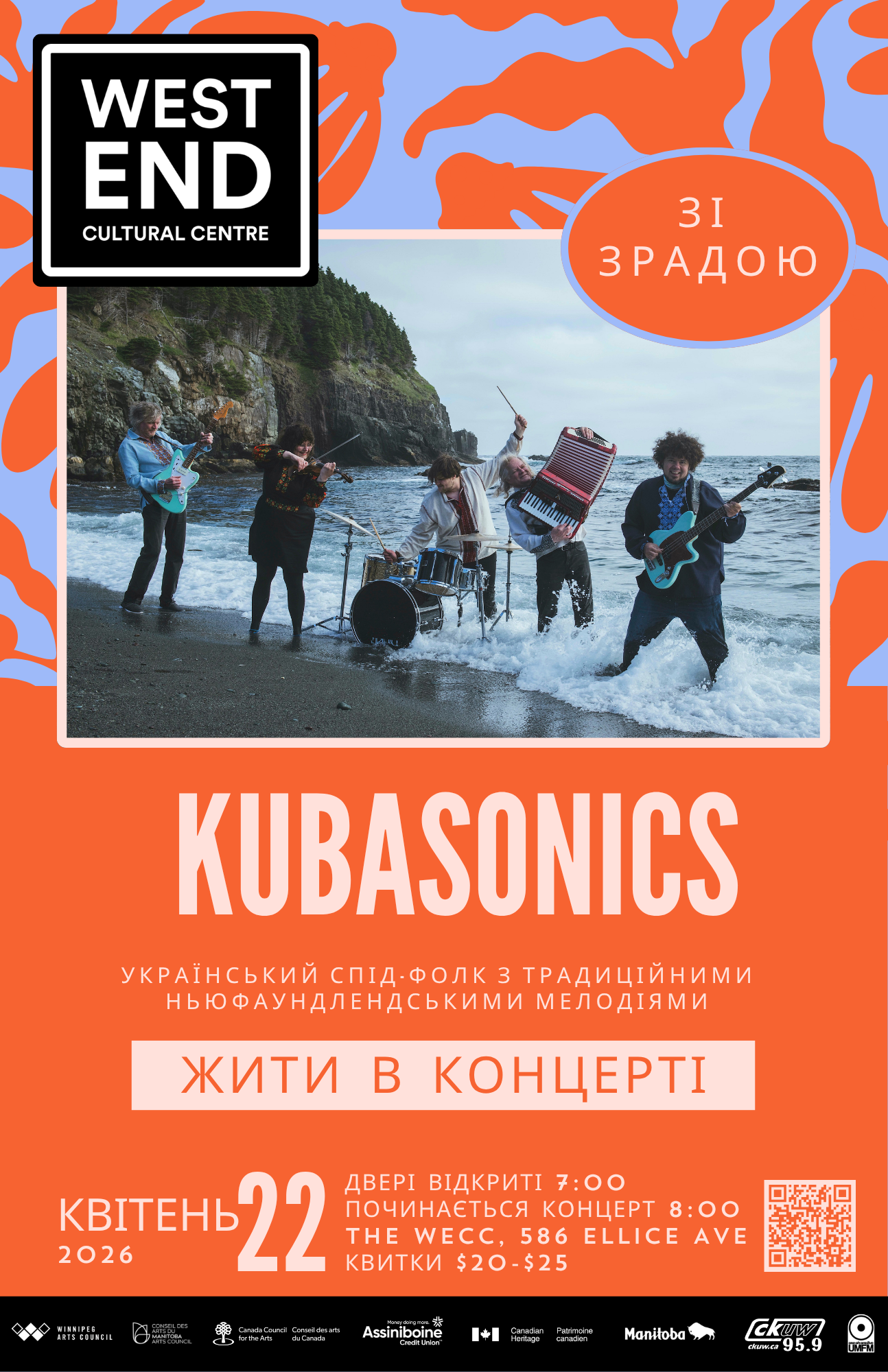 Kubasonics are arguably Newfoundland's finest Ukrainian band. This award winning group combines top-flight musicianship spiced with quirky humour, a dizzying array of exotic traditional instruments, and an eclectic high-energy stage show. Their unique brand of mile a minute speed-folk is balanced with haunting ancient melodies and heart-warming stories that offer a window into a unique and vibrant culture. From large concert stages to intimate workshop settings they never fail to capture an audience. And with splashes of traditional Newfoundland tunes as an important part of their hybrid musical mix, a Kubasonics show is an experience not soon to be forgotten.